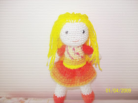 Aslında hep istiyordum amigurumi denemek ama yapamayacağımı düşünüp vazgeçtim bu yüzden..Sonra Betül Hanım'ın sayfasıyla tanışıp bebek yapımını aşamalı aşamalı anlatmış olduğunu görünce bir cesaret başladım,ve bir gecede bitti..İkra istedi aslında ben sayfayı gezerken görüp "anne bebek yap,pembe olsun" dedi ama pembe ipim olmadığı için bir dahaki sefere yapmak için söz verdim.gerçekten çok zevkli ama ilk başlayanlar için biraz uğraştırıcı oluyor.Daha basit şeylerle başlamak daha mantıklı..Tekrar çok teşekkür ediyorum Örgü Oyuncakları'na :))Çok mutlu olduk anne-kız..İkra bebeğe güzel bebek diye şarkılar söyledi ilk bir kaç dakika şimdi bıraktı elinden..Doyumsuz bizim çocuklarımız.Her şey önlerinde olunca..:)