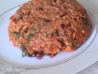 mercimek,köftelik bulgur,rendelenmiş havuç ve mor lahana,yarım demet dereotu,nar ekşisi,bol kimyon ve limon,soğan,salça,sıvıyağ...