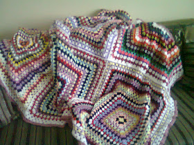 O kadar zevkliydi ki örmesi..Büyük bir hevesle örüp birleştirdim..kendimi çok kaptırmışım kızımın yatağına göre olsun derken neredeyse çift kişilik yatak boyutuna gelmiş :) Kalan iplerimle kırlent yapmayı düşünüyorum şimdi..