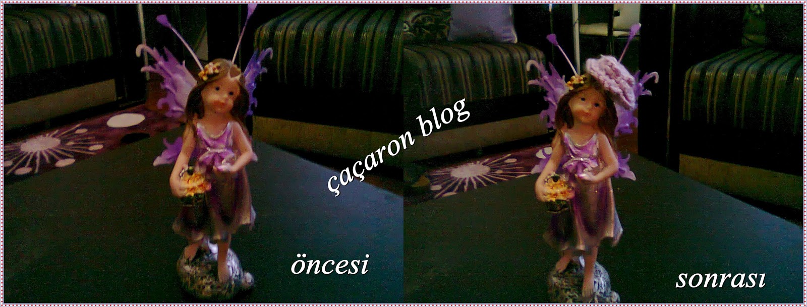 Bebeğimin odası için aldığımız bibloyu bisikletle evin içinde gezdirirken kırınca iş başa düştü..Atmya kıyamadık,çünkü hevesini almamıştı..Parçaları yapıştıralabilecek gibi değildi,un ufak olmuştu...Bende örgü çiçekten bir şapka kondurdum kırık yerine..Yenilenmiş oldu..